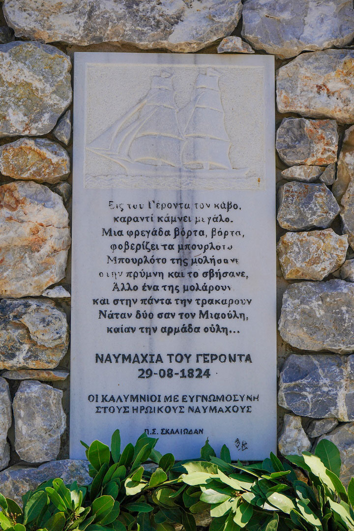 Το έτος 2021, στο πλαίσιο του εορτασμού των 200 χρόνων από την Επανάσταση του 1821, ο Πολιτιστικός Σύλλογος Σκαλίων Καλύμνου “ΣΚΑΛΙΩΔΑΝ” ανέγειρε ένα λιτό μνημείο, σε ένδειξη τιμής και ευγνωμοσύνης προς τους ηρωικούς ναυμάχους που αγωνίστηκαν για την ελευθερία της πατρίδας μας.