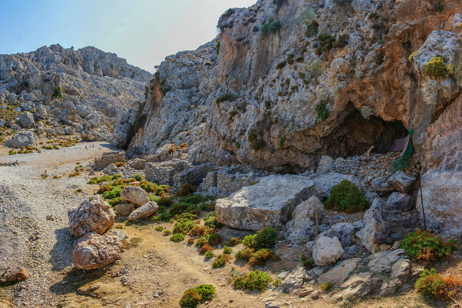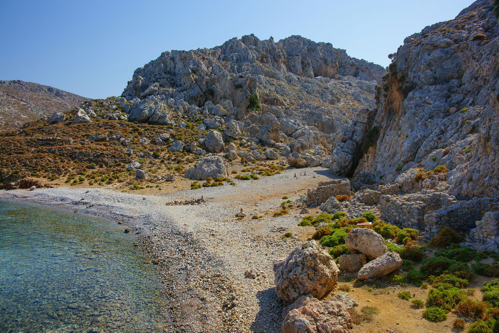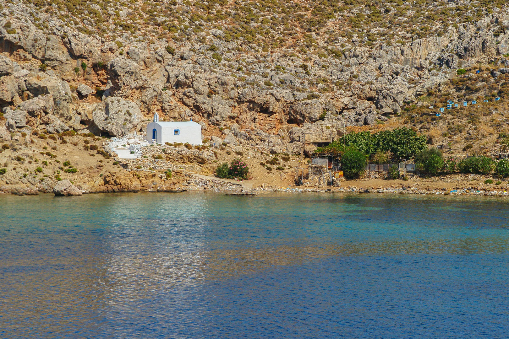Στο βόρειο άκρο του κόλπου βρίσκεται το εκκλησάκι του Αγίου Γεωργίου, ενώ στο νότιο άκρο ερείπια παλαιών κατοικιών, δίπλα στο εκεί σπήλαιο.