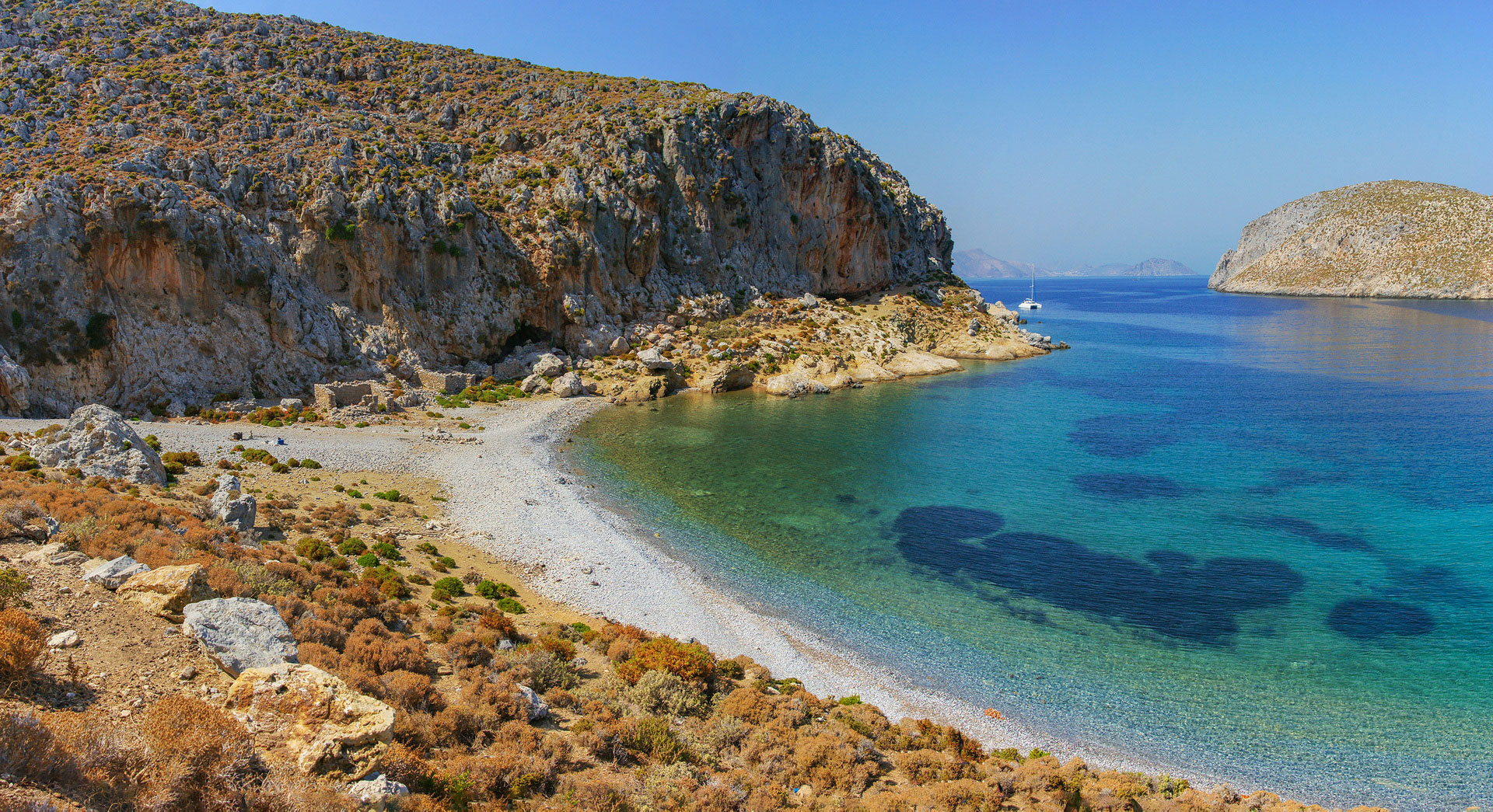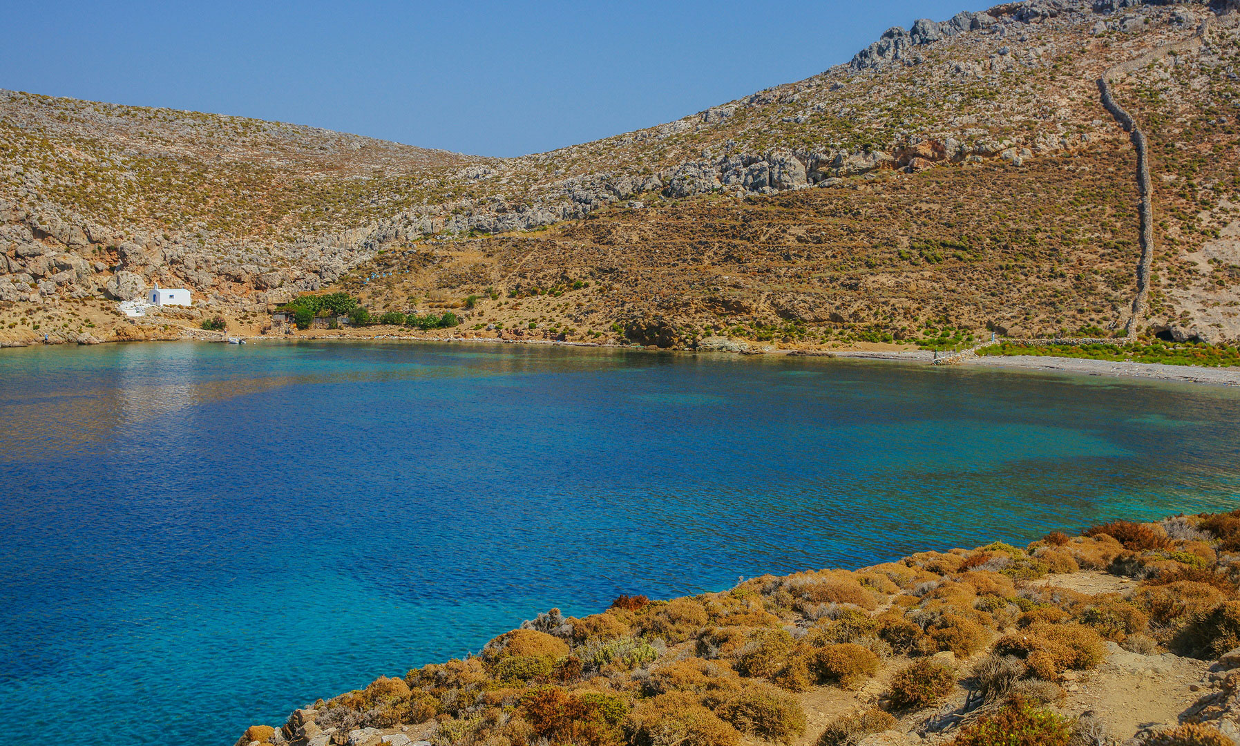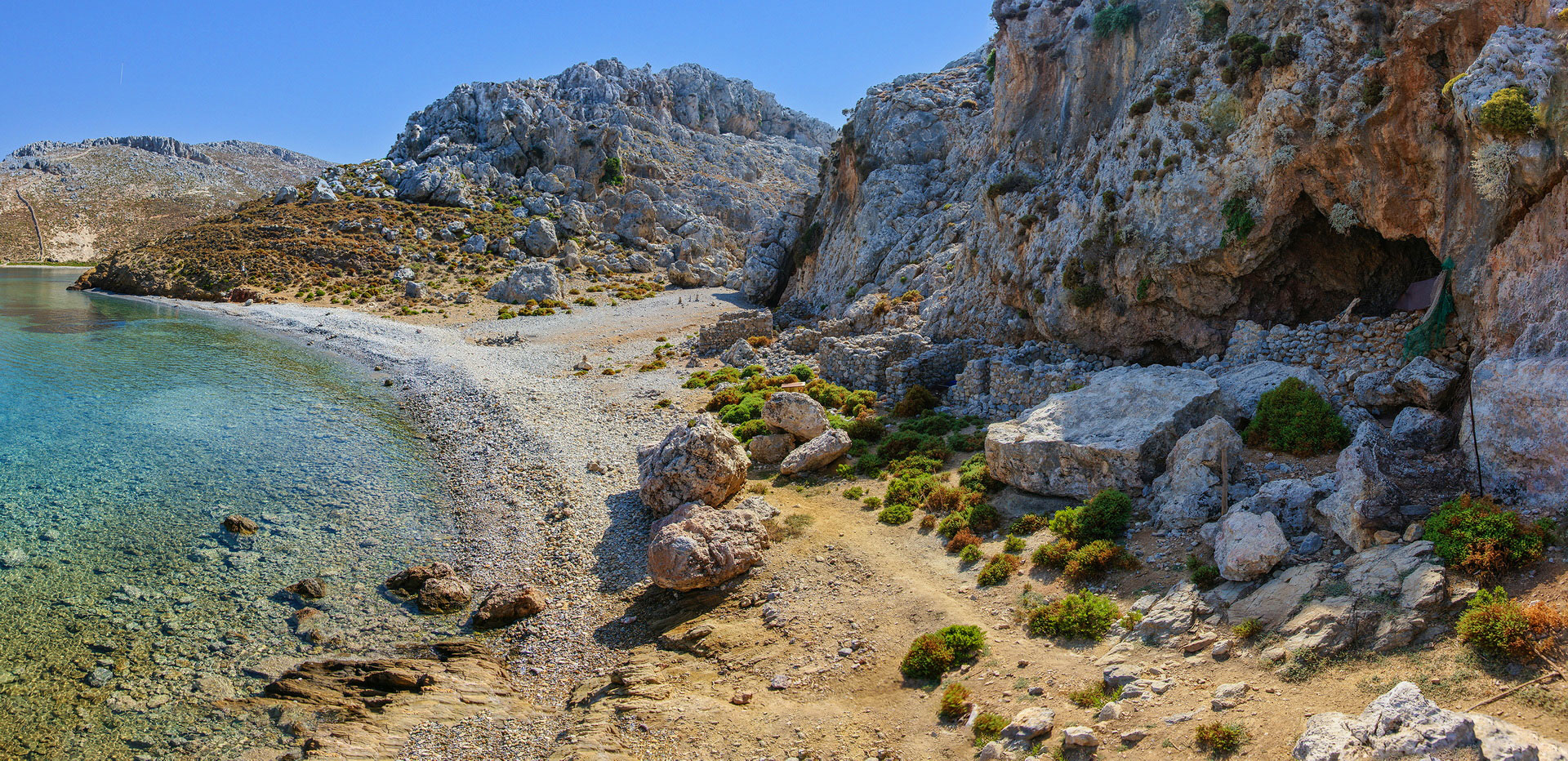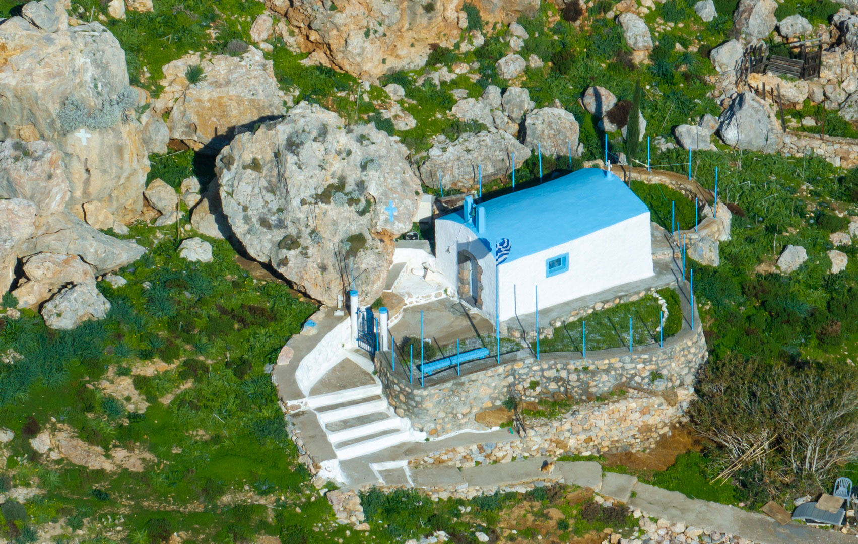 Στο βόρειο άκρο του κόλπου βρίσκεται το εκκλησάκι του Αγίου Γεωργίου, ενώ στο νότιο άκρο ερείπια παλαιών κατοικιών, δίπλα στο εκεί σπήλαιο.