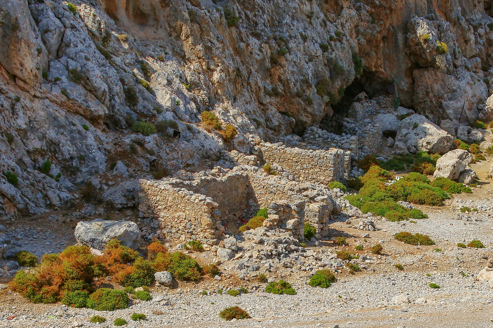 Επί της παραλιακής ζώνης εντοπίζονται πάμπολλα θραύσματα αγγείων και κεραμίδες από στέγες κτιρίων των πρωτοβυζαντινών / παλαιοχριστιανικών χρόνων. Επίσης, σε δύο σημεία του κόλπου υπάρχουν τα κτιριακά κατάλοιπα από εργαστήρια παραγωγής πήλινων αγγείων. Δυστυχώς όμως η άμεση γειτνίασή τους με τη θάλασσα συνετέλεσε στην καταστροφή τους λόγω της ανόδου της στάθμης της θάλασσας και της επενέργειας των κυμάτων.